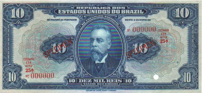 1082 – 10000 Réis 17a.estampa – Brasil com Z – specimen – R.110.as – FE
