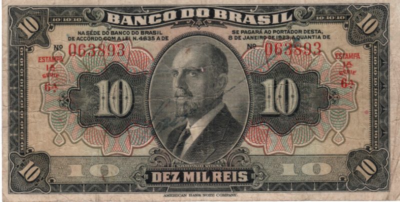 10000 Réis 1a.estampa – Banco do Brasil – autografada – R.196.b (Atenção num, alterada na 10a.edição)- BC/MBC