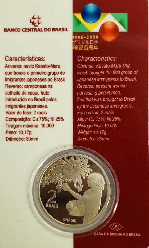 2 Reais 2008 – Centenário da Imigração Japonesa – na cartela – V.599 (17a.) – FC