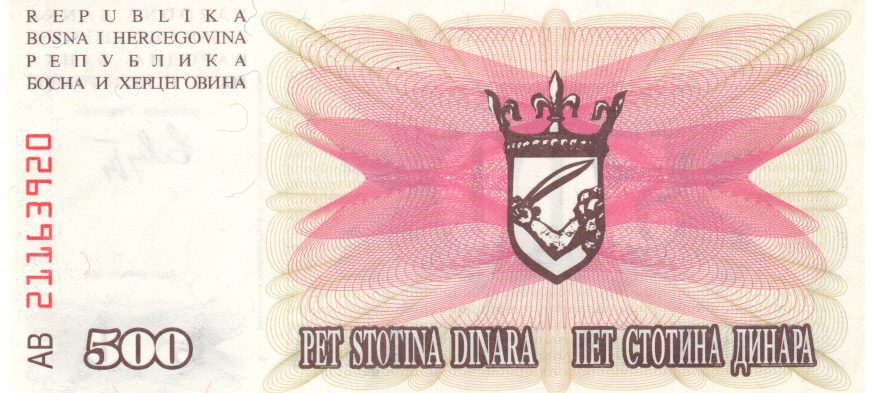 Bosnia Herzegovina – 500 Dinara – P.14.a – FE