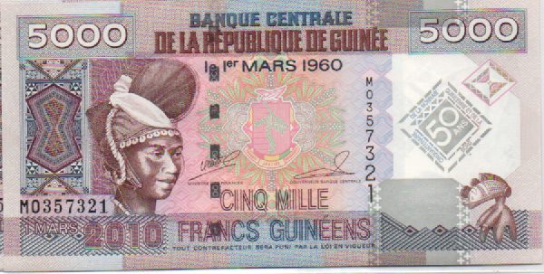 Guiné (comemorativa dos 50 anos do dinheiro da Guiné) – 5000 Francos – P.44.a – FE