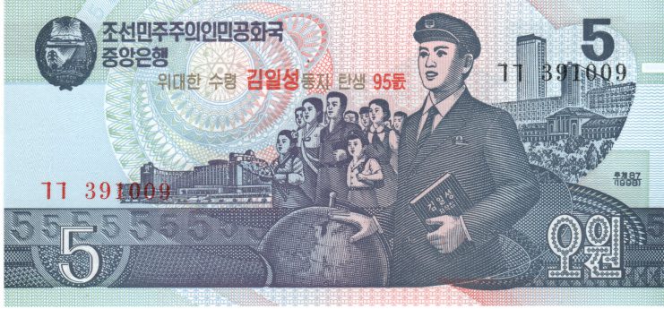5349 – Koreia do Norte (comemorativa) – 5 Won – P.50 – FE