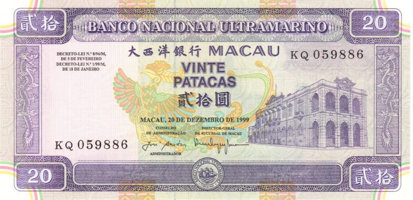 Macau (Banco Nacional Ultramarino) – 20 Patacas – P.71.a – FE