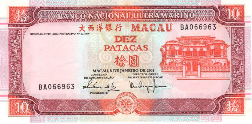 Macau (Banco Nacional Ultramarino) – 10 Patacas – P.76.a – FE