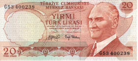 Turquia (Ataturk) 20 Liras – P.187.a – FE