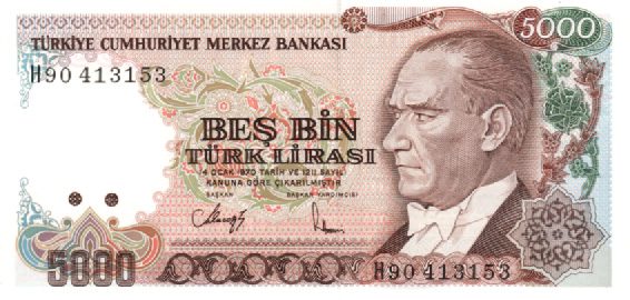 Turquia (Ataturk) 5000 Liras – P.198 – FE