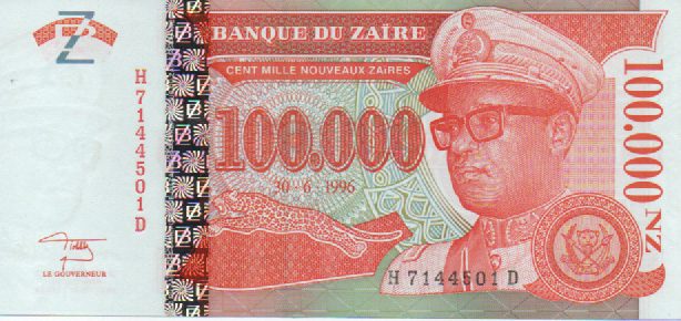 6496 – Zaire (laranja) 100000 N.Zaires – P.77 – FE