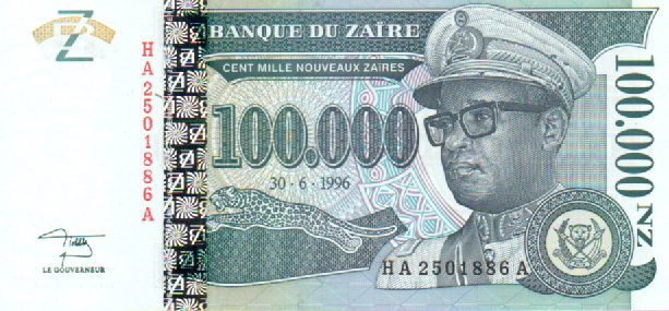 6497 – Zaire (azul) 100000 N.Zaires – P.77A.a – FE