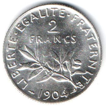 6697 – França 2 Francos 1904 – Km.845.1 – S/FC