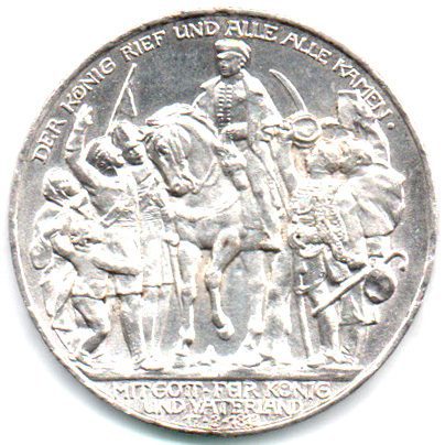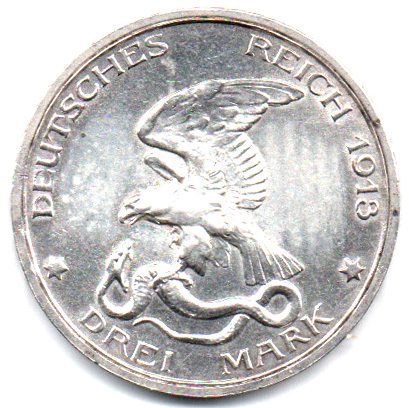 Estados Alemães 3 Marcos 1913 – A – Prussia – Km.534 – S/FC