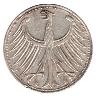 6742- Alemanha Ocidental – 5 Marcos 1957D – Km.112.1 – MBC