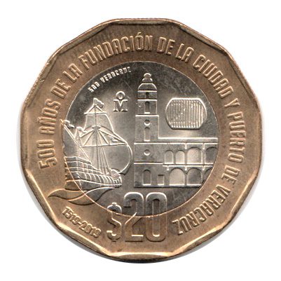 México 20 Pesos 2019 Bimetálica – 500 anos da Cidade de Veracruz – Km.991 – FC
