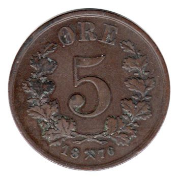 Noruega 5 Ore 1876 Bronze – Km.349 – MBC/S