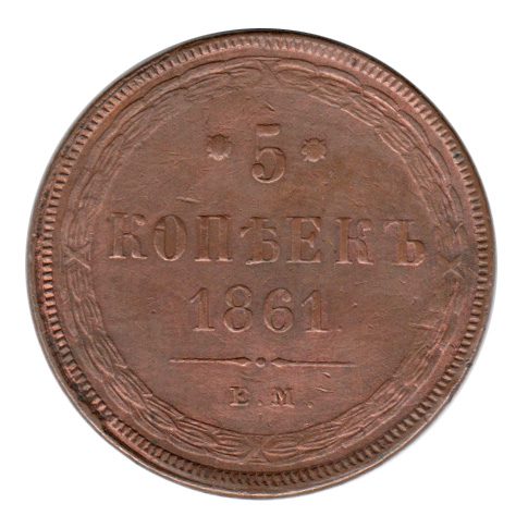 Rússia 5 Kopeks 1861EM Cobre – Alexandre II – Y.6.a – S