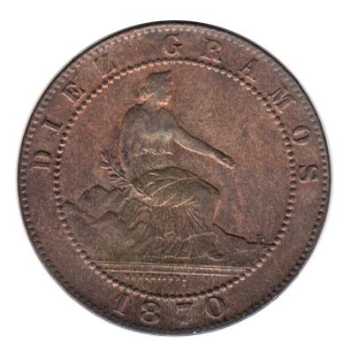 Espanha 10 Centimos 1870OM Cobre – Km.663 – S