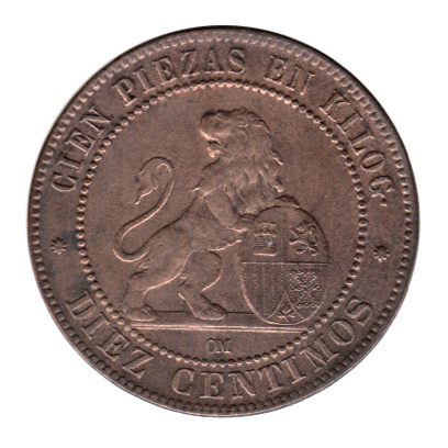 7881 – Espanha 10 Centimos 1870OM Cobre – Km.663 – S