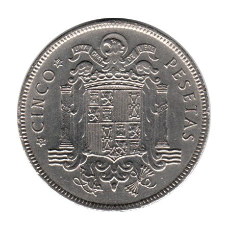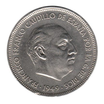 7900 – Espanha 5 Pesetas 1949(49) Níquel – Km.778 – S