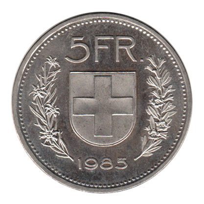 Suiça 5 Francos 1985 Cuproniquel – Km.40a.3 – FC