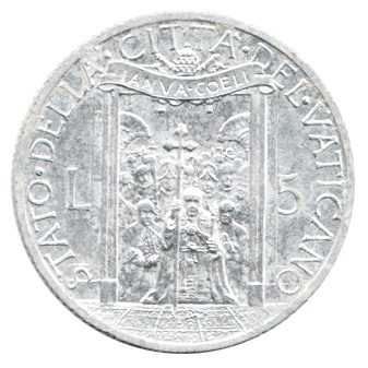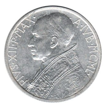 Vaticano 5 Liras 1950 Alumínio – Pio XII – Km.46 – S