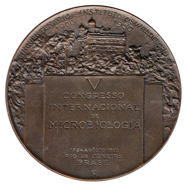 Cinquentenário do Inst. Oswaldo Cruz – V Congresso Internacional de Microbiologia (L.Campos) – Bronze – 1950A04B – S
