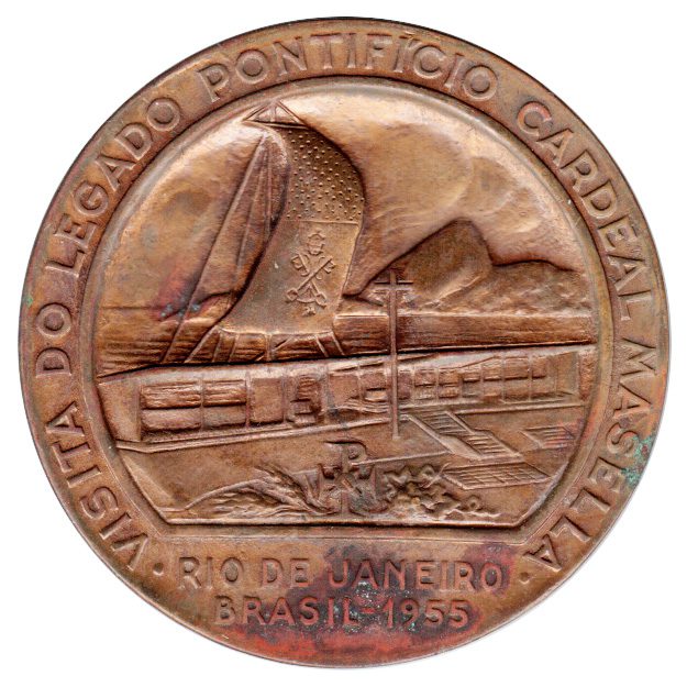8948 – XXXVI Congresso Eucarístico Internacional * Visita do Legado Pontifício Cardeal Masella (B. Ribeiro) – Bronze – 1955A04B – S