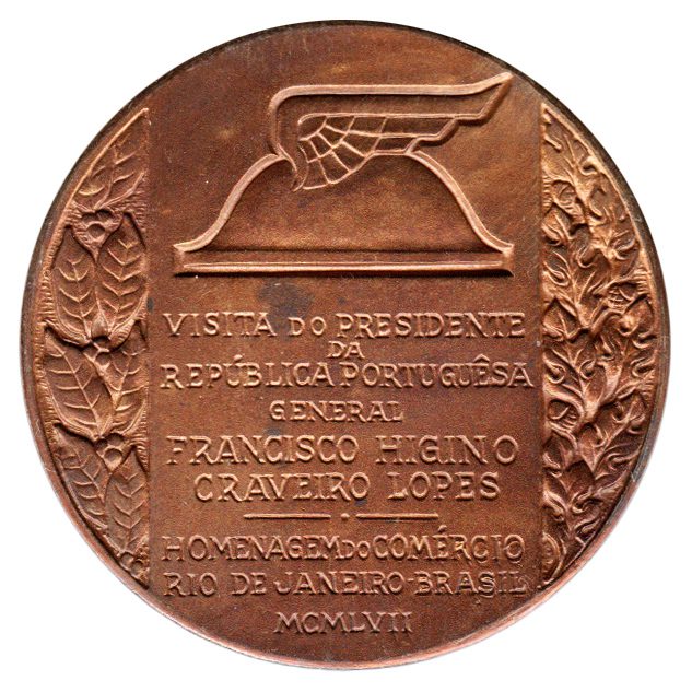 Pres. Craveiro Lopes- Visita ao Brasil – Homenagem do Comercio RJ – Semana de Portugal – Bronze – 1957A03B – S/FC